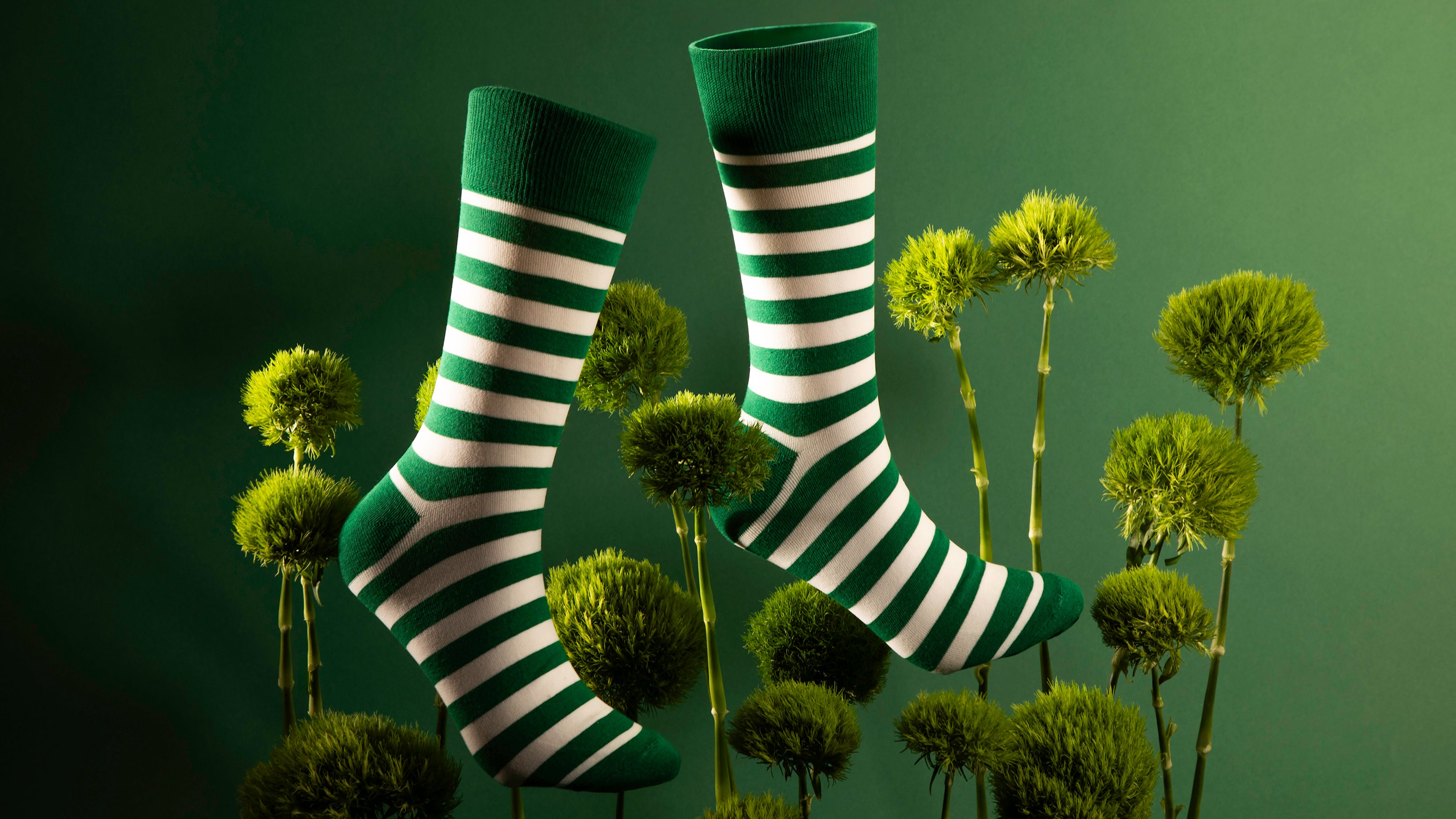 Green + White Striped Socks